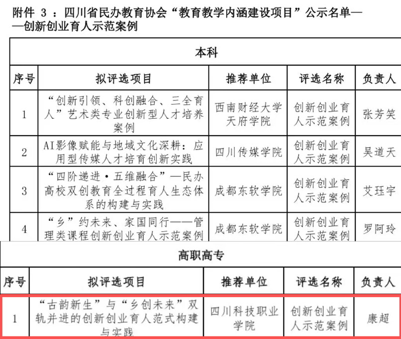 四川科技职业学院卫星互联网学院康超团队“古韵新生+乡创未来”双创育人项目成功立项省级示范案