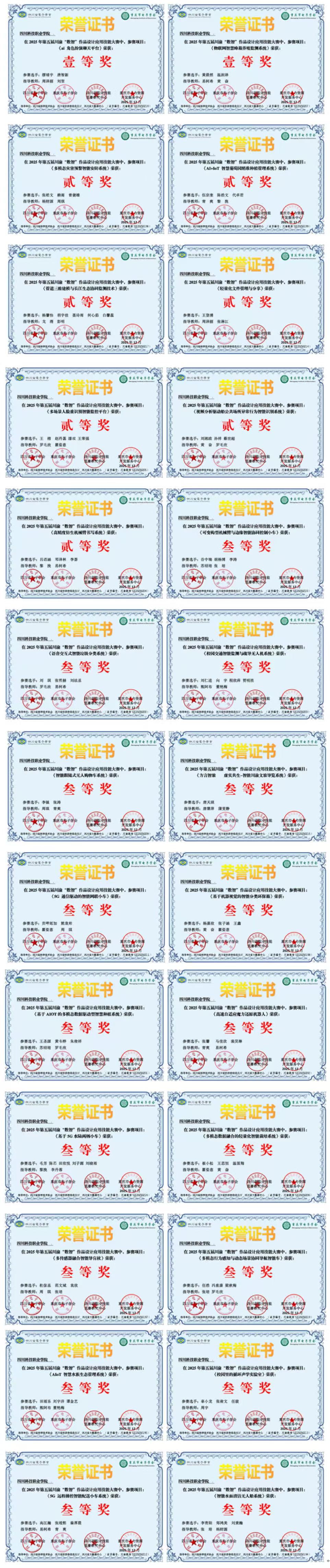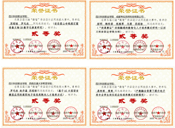 四川科技职业学院卫星互联网学院在第五届川渝“数智”大赛中斩获26项大奖近日,2025年12